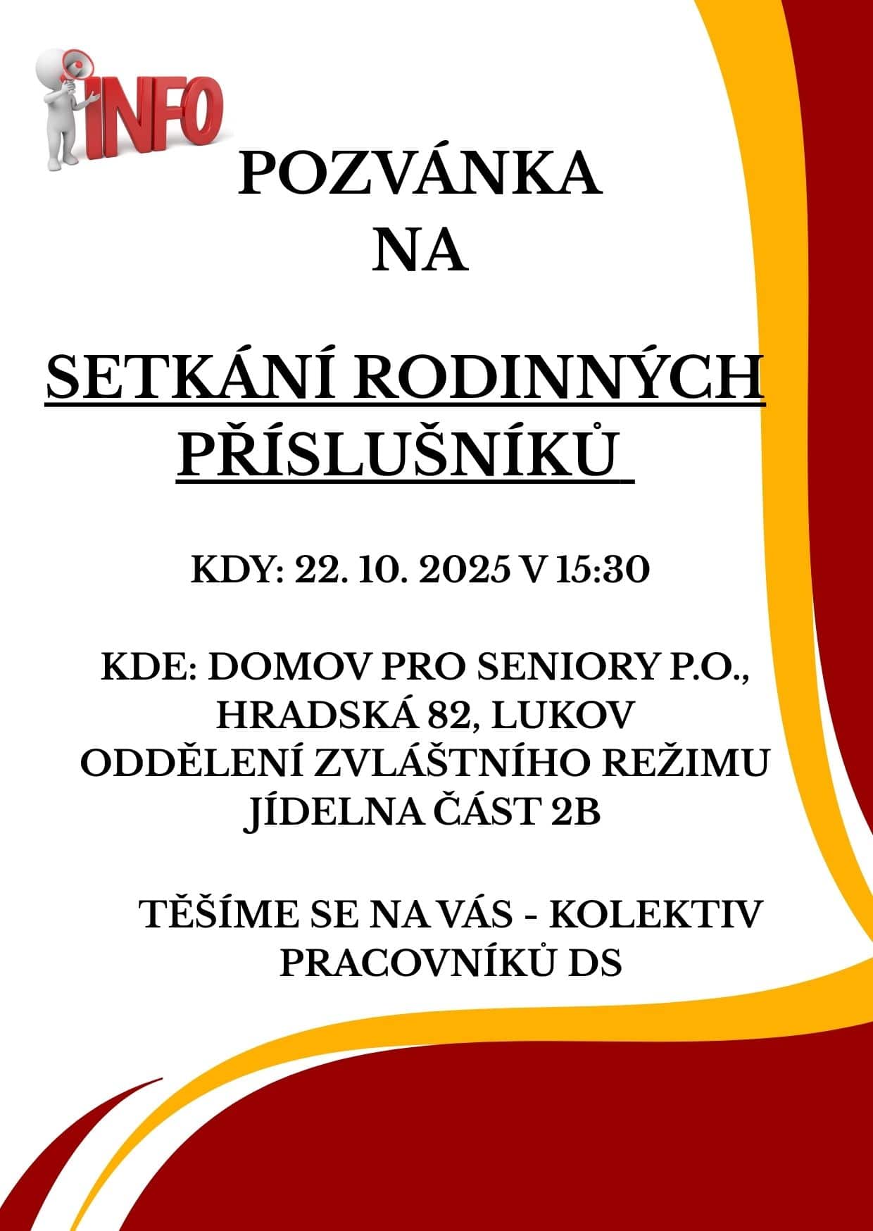 Setkání proběhne na oddělení se zvláštním režimem (2.odd.) – viz.pozvánka.
